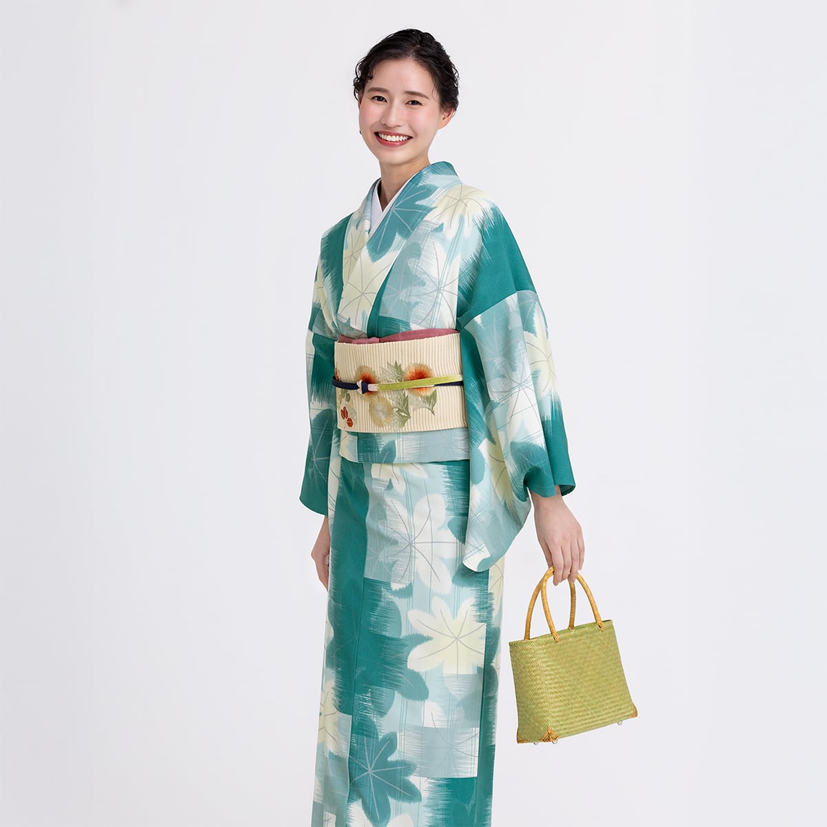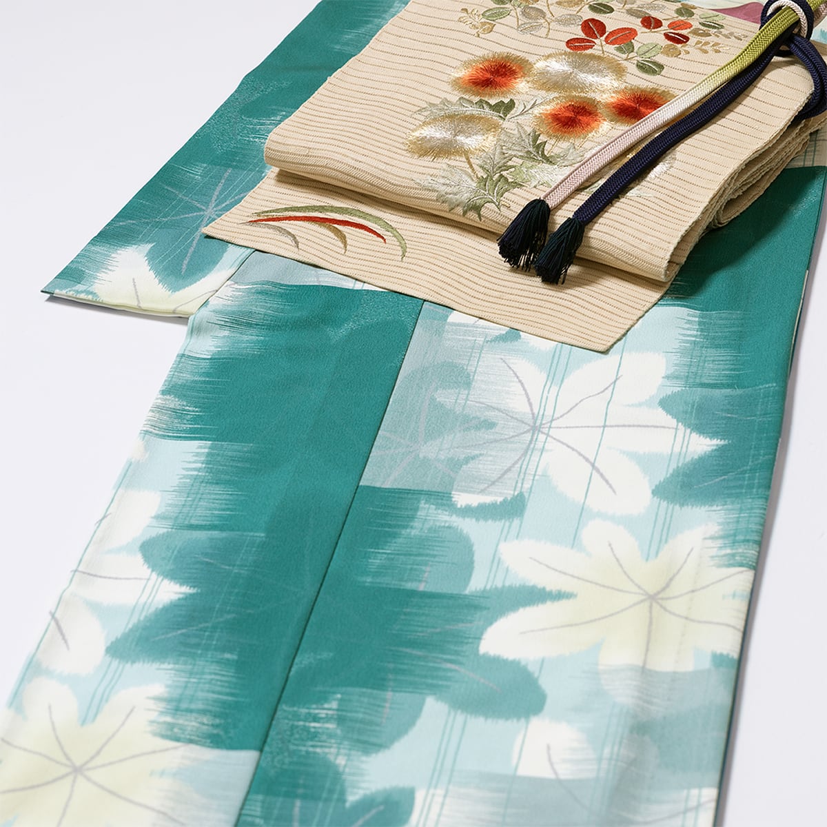 メープルレトロ・ビリジアン【恋せよキモノ⼄⼥×東レシルック®】仕立て上がり単衣着物