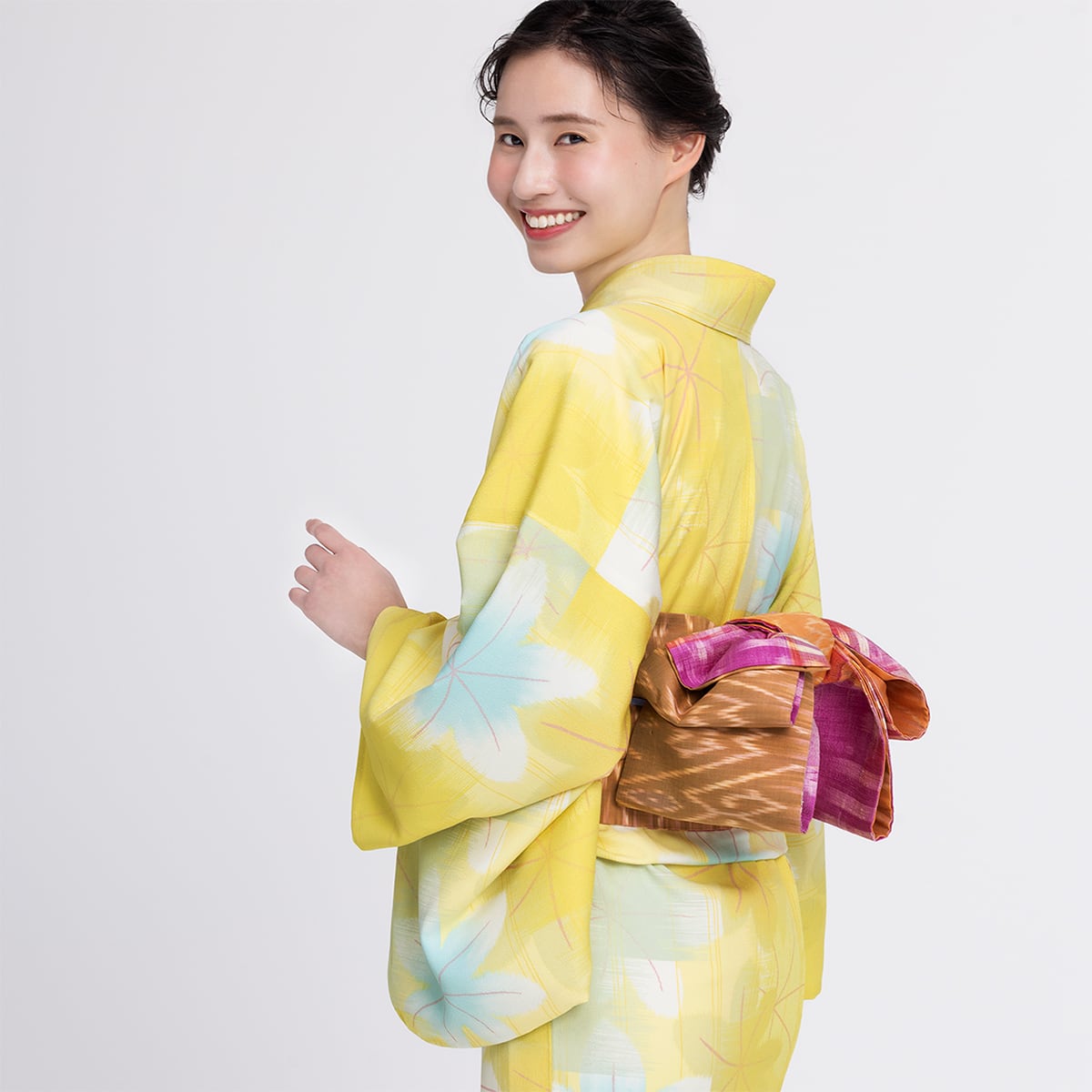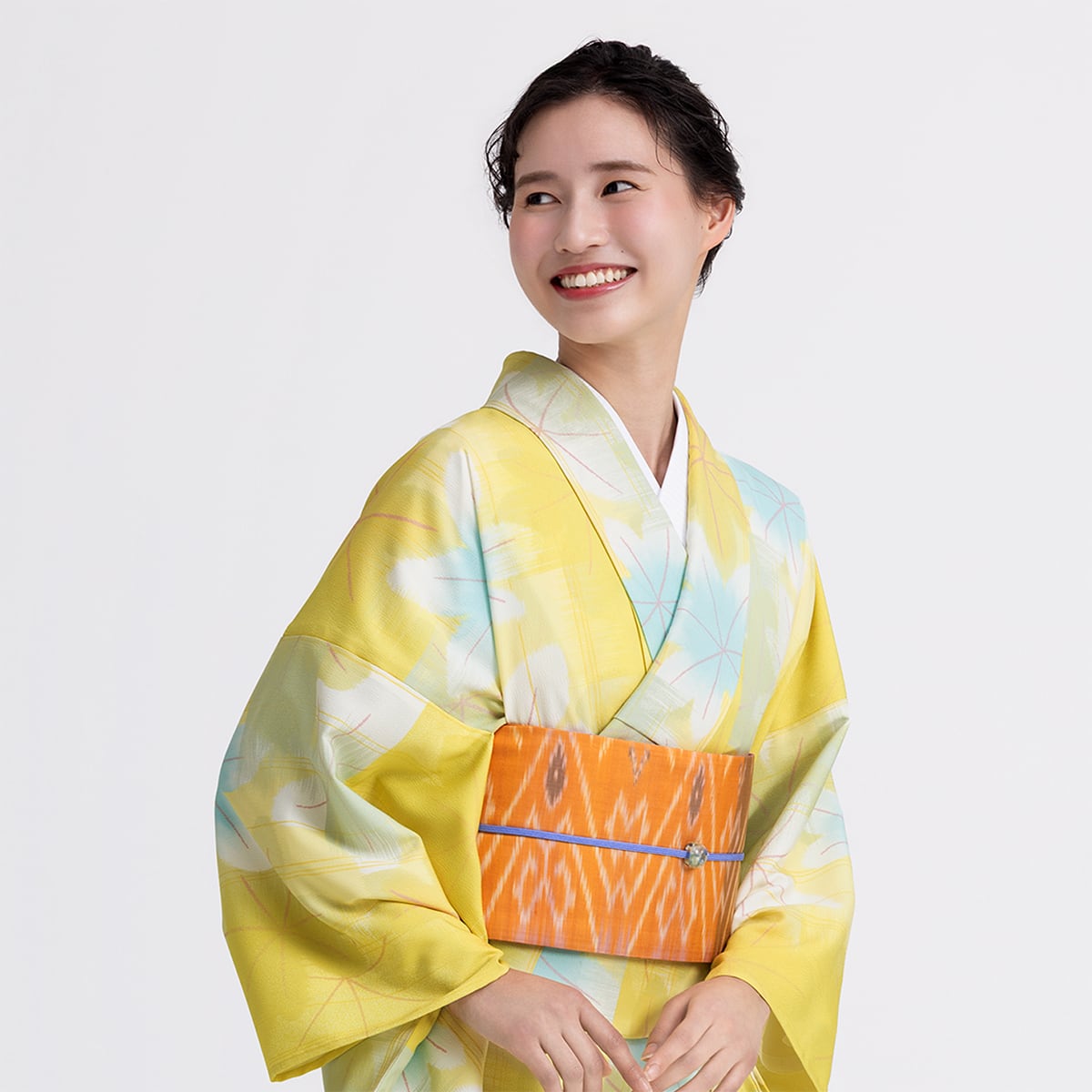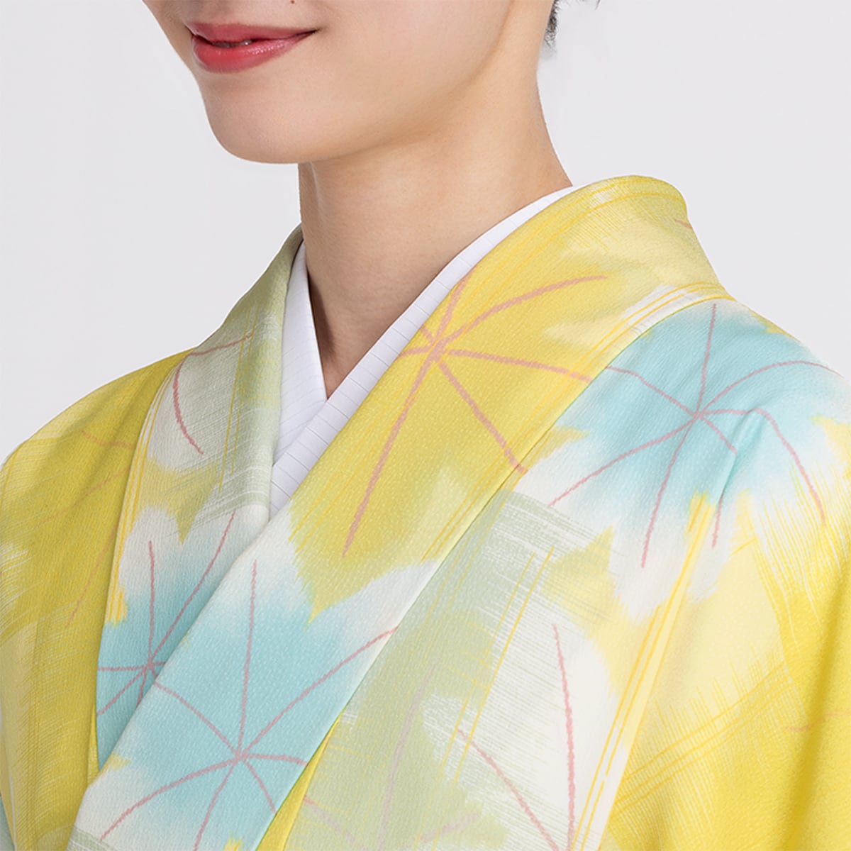 メープルレトロ・イエロー【恋せよキモノ⼄⼥×東レシルック®】仕立て上がり単衣着物